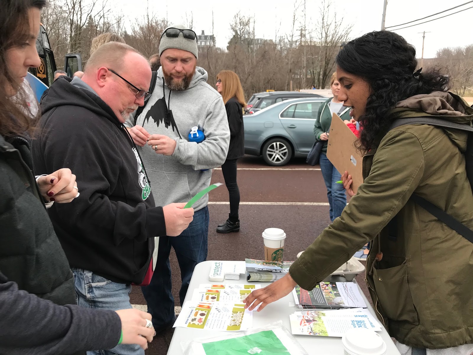 We met up at the Phoenixville Foundry, where we checked in participants and boarded a bus. Each person received a schedule, event bracelet and a silicon pint glass to take home.